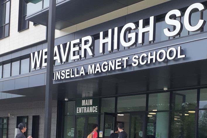 Delivering bags of food to children belonging to families selected to participate in the Food Assistance Program at Weaver High School, Hartford Connecticut.
